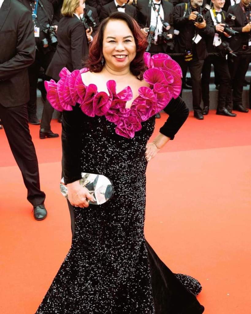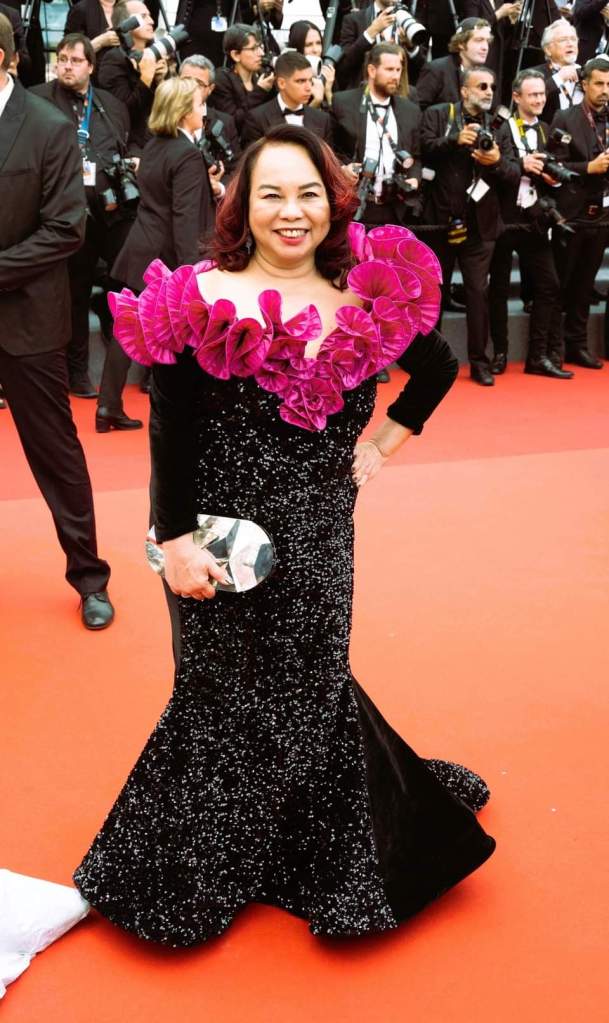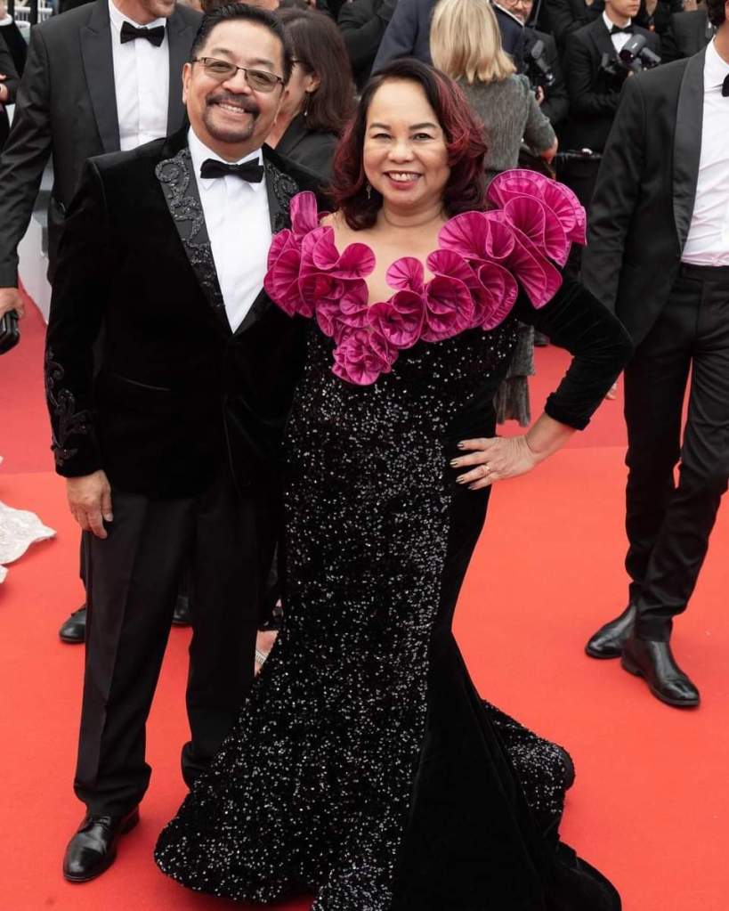 Filipino Hollywood Journalists Ruben and Janet Nepales spotted at the premiere of “Indiana Jones and the Dial of Destiny” wearing Alexis Monsanto creations.