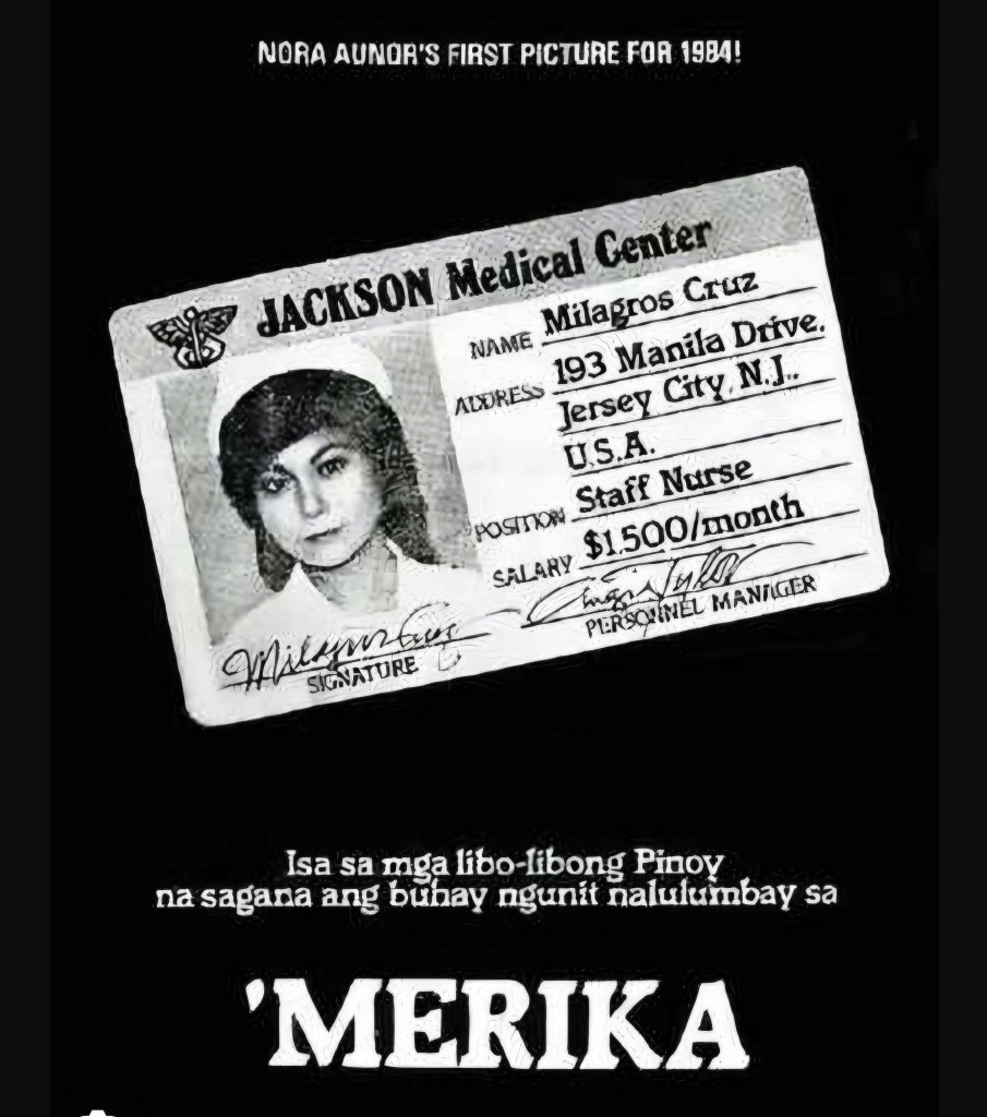 1984 Came ang I was able to watch ‘Merika” this “quiet” movie made me want to pursue a career in Nursing! I wanted to live and work in New York! Two dreams whose nidus was instilled by the Superstar! I became a Nurse ten years later and eventually settled in New York in 2008. I remember going to 193 Manila Avenue in New Jersey, the house where Nora lived in the movie “‘Merika”. I made an album where her stills in the movie reflected my own “American Dream”!